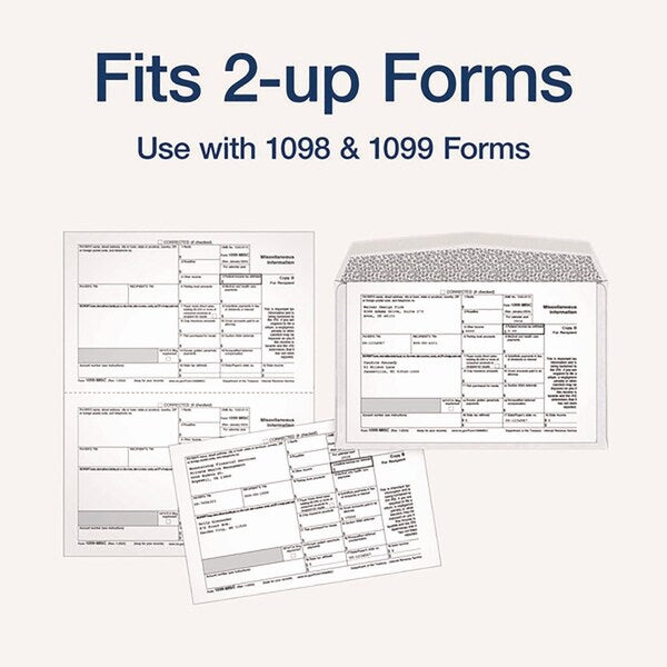1099 Double Window Envelope, Commercial Flap, Gummed Closure, Contemporary Seam, 5.63x9, White, PK24