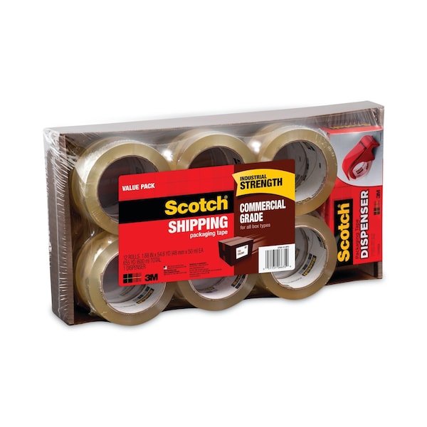 3750 Packaging Tape w/DP300 Disp, 3" Core, 1.88"x54.6 yds, Clear, PK12