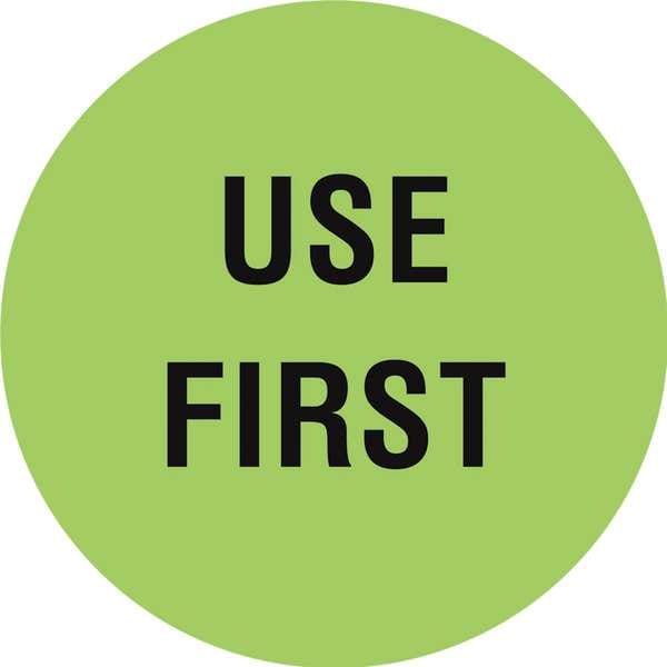 Circle Inventory Control Label, Use First, Green, Pk1000