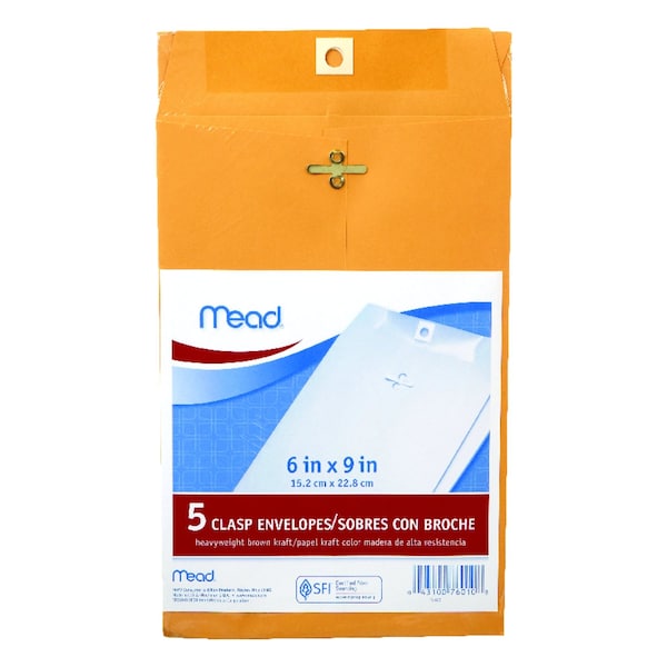 Mead 6 in. W X 9 in. L A10 Brown Envelopes 5 pk